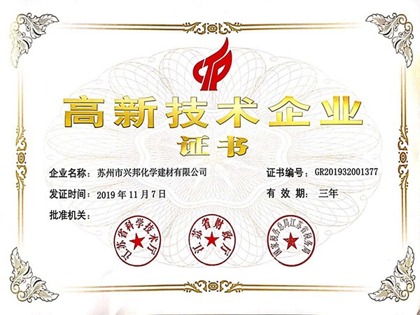 興邦擁有經(jīng)驗(yàn)豐富的高水平科研技術(shù)團(tuán)隊(duì),完整的科研管理體系,及完善的科研測試硬件設(shè)備。良好的軟硬件條件和持續(xù)的科研投入帶來累累碩果,興邦產(chǎn)品和為客戶提供的配方開發(fā)支持獲得客戶一致好評(píng),累計(jì)獲得授權(quán)的發(fā)明專利超13件、實(shí)用新型超4件,累計(jì)參與國家、行業(yè)及團(tuán)體標(biāo)準(zhǔn)超20項(xiàng)。與此同時(shí),興邦自2016年被首次認(rèn)定為高新技術(shù)企業(yè)以來,已經(jīng)連續(xù)三次順利通過高企審核。公司技術(shù)研發(fā)中心被認(rèn)定為“蘇州市綠色節(jié)能建筑材料工程技術(shù)研究中心”、“蘇州市企業(yè)技術(shù)中心”、“江蘇省無機(jī)膠凝材料外加劑工程技術(shù)研究中心”等等。